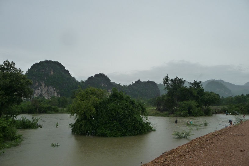 « Cette grotte-là est complètement sous l’eau » nous dit l’autochtone en Laotien (oui car quand vous êtes niveau 5 vous comprenez absolument toutes les langues du monde). « Il n’est pas possible de la visiter. Je vous conseille plutôt de rebrousser chemin, de rejoindre la route numéro 12 et de la poursuivre sur 5 km, là-bas vous pourrez voir quelque chose d’absolument hallucinant ».