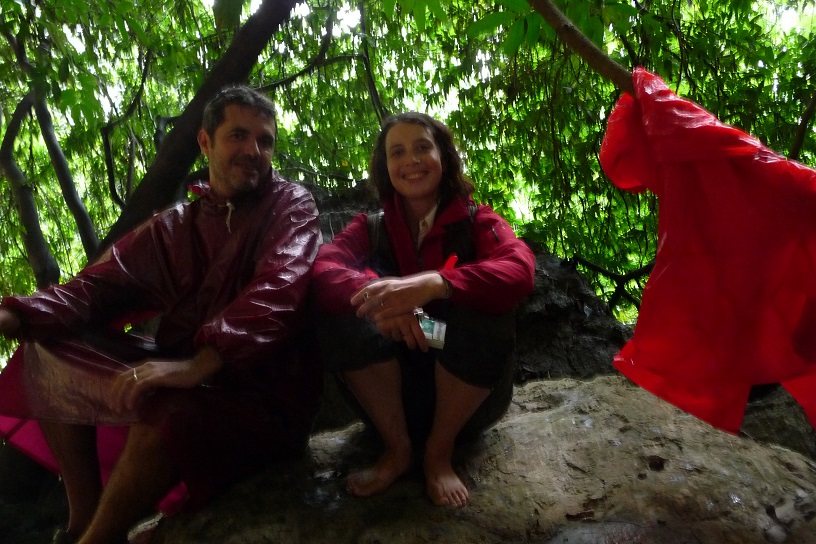 Grimper sur de la roche mouillée en tong étant une deuxième nature chez nous, cela ne nous pose aucun problème.