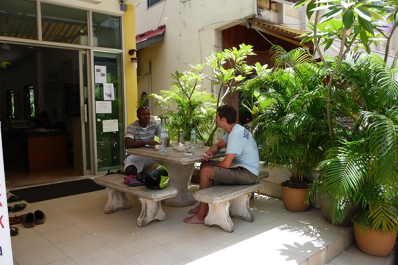 En effet, le Ricard se vendant dans les supermarchés moins cher qu’en France, nous nous sommes jetés sur l’occasion de profiter de petits apéros sur la table devant la guesthouse.