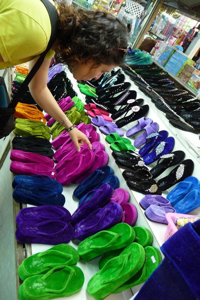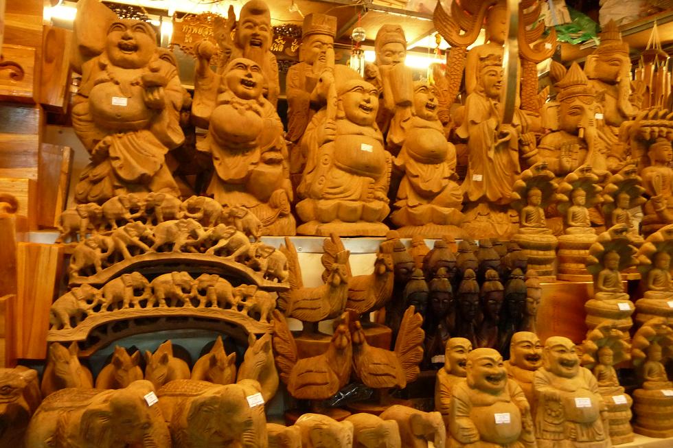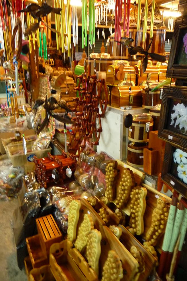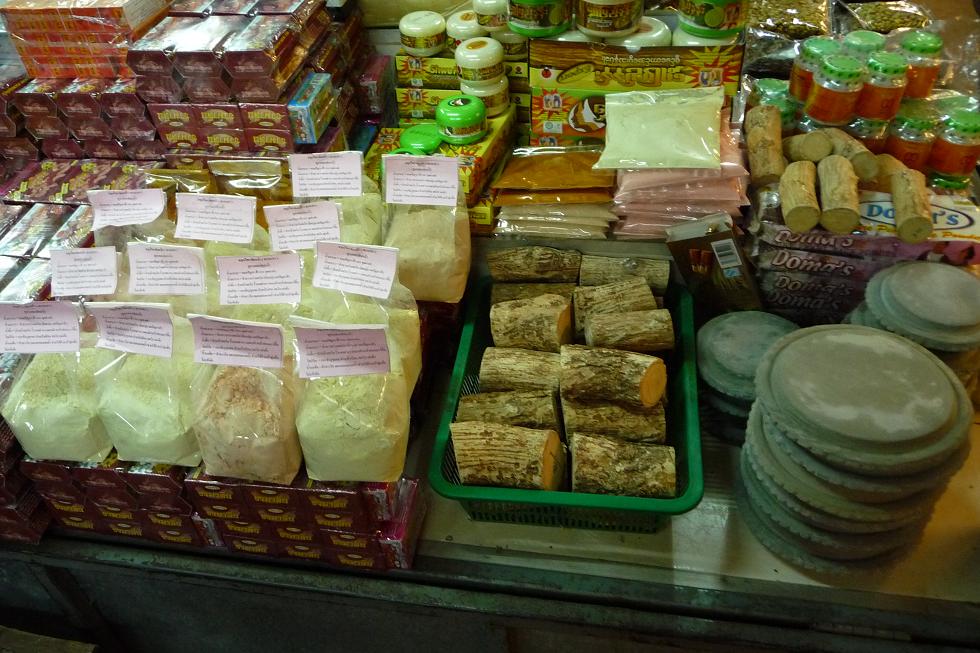 Et sur les bords de la rivière frontalière, un second marché, birman celui-ci. Bondé de produits birmans, comme le Thanaka : cette poudre que les femmes, les enfants et parfois les hommes birmans se mettent sur le visage, des habits traditionnels, des sculptures, des bijoux, des œufs en quartz…