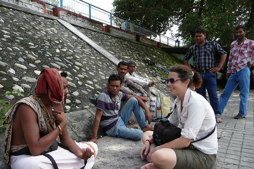 Un vieux sadhu tente de communiquer avec nous. Il fait poser une couverture par terre et nous invite à le rejoindre. Déménagement sur la couverture.