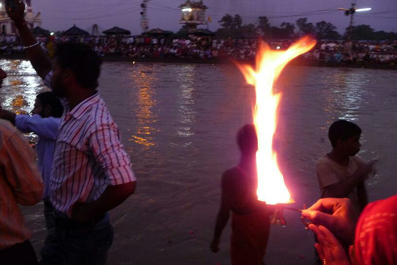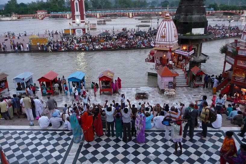 Haridwar est l’une des 9 villes saintes d’Inde, Vishnou y étant passé, à preuve son empreinte de pied dans le Ghât principal de la ville. Ghât où tous les soirs, à la tombée de la nuit, le Gange est célébré lors de la cérémonie du feu.