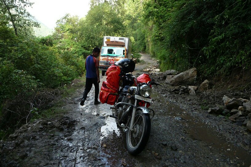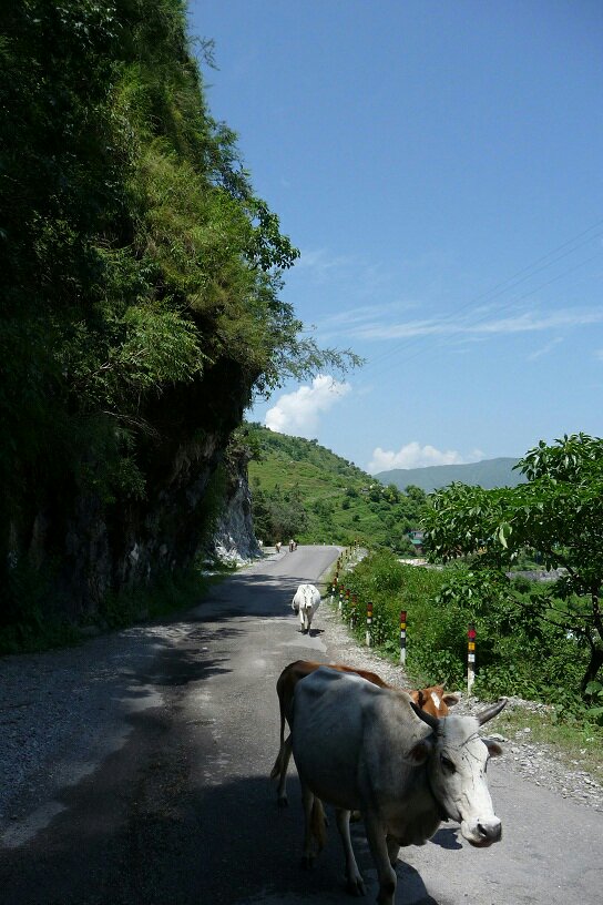 Mussoorie et ses notables Indiens sont derrière nous depuis quelques kilomètres, la route serpente à l’aplomb d’une des nombreuses vallées qui peuplent l’entrée sud de l’Himalaya.