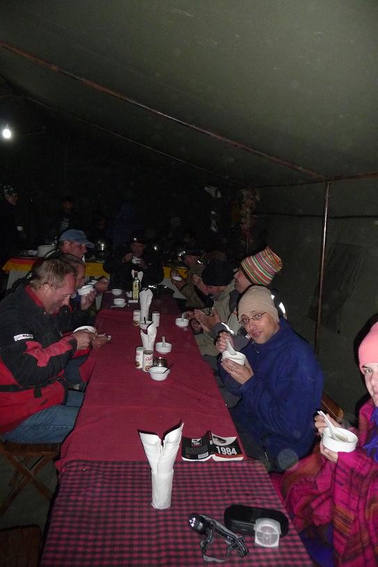 Des tentes, communes, et des toilettes extérieures. Pas Byzance, mais cela permet de ne pas décéder car les nuits commencent à devenir bigrement fraiches a ces altitudes.