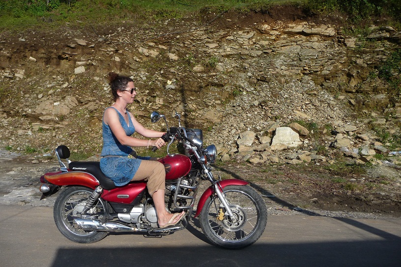 Finalement les polacks feront marche arrière pour des raisons logistiques (voir l’article : se dépatouiller avec une Royal Enfield en Inde et au Népal) et c’est Hannah, la jeune Australienne joyeuse et heureuse de devenir motarde qui remportera la joie suprême de poser ses fesses d’australienne sur Rajesh.